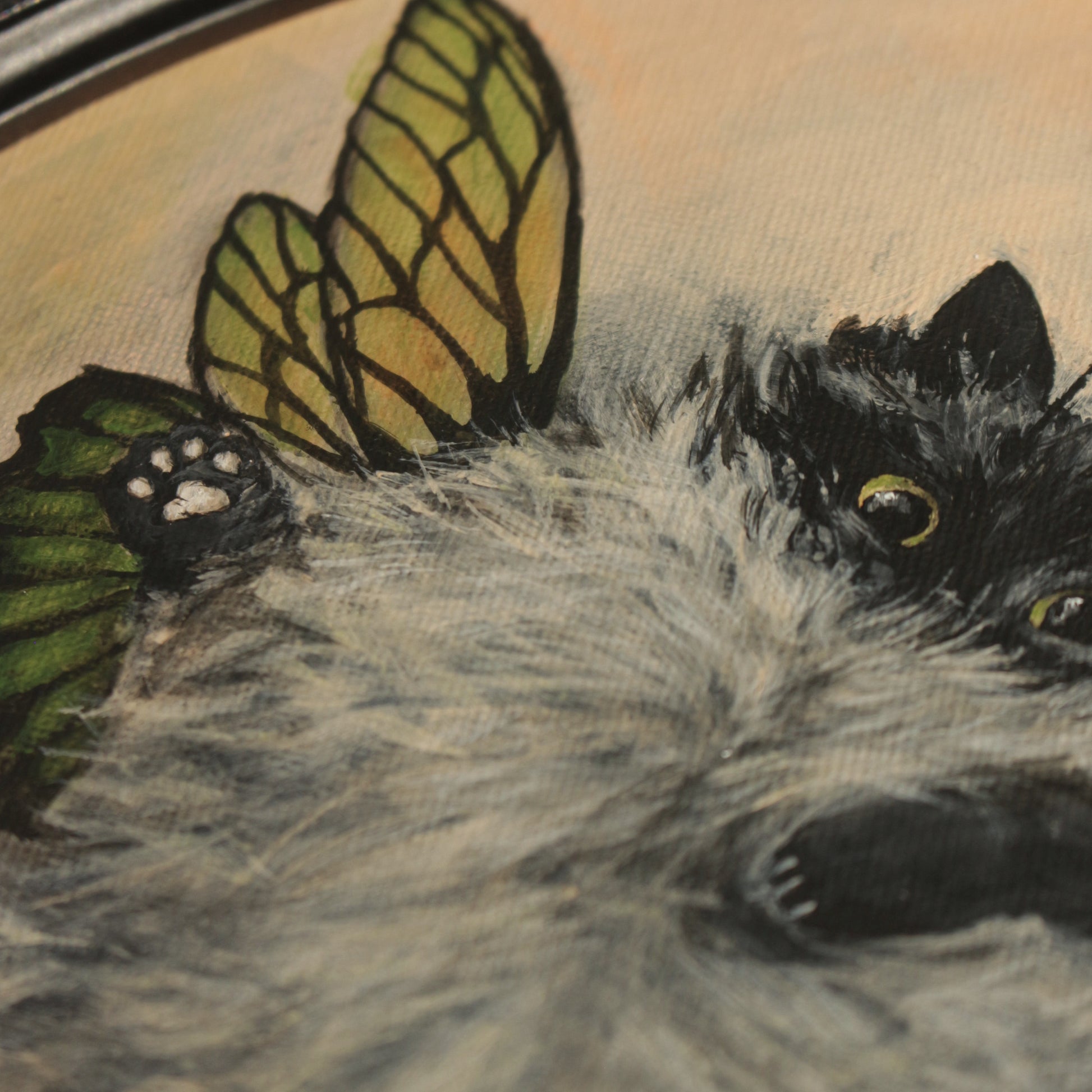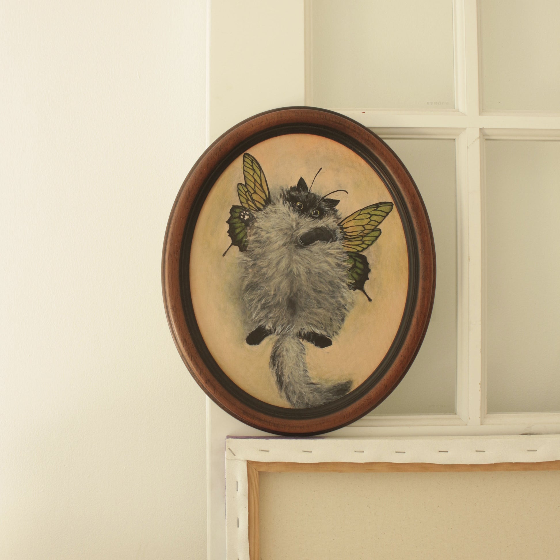 Original Hand-Painted Butterfly Cat – Framed Artwork