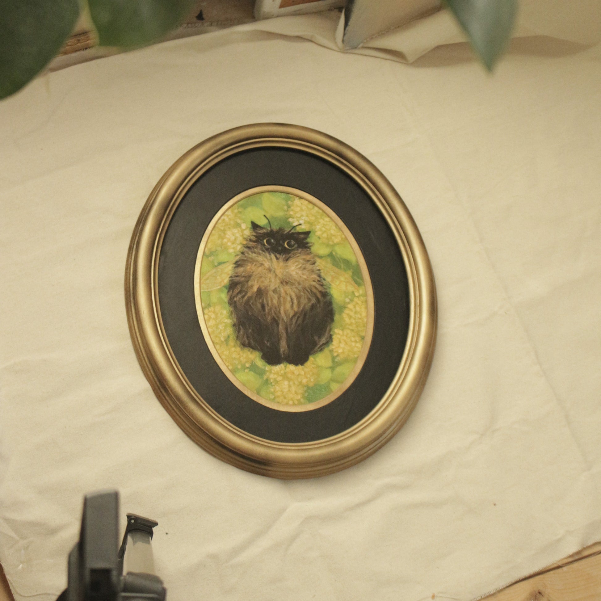 This piece is an original giclée print, produced on high-quality canvas roll to achieve the most authentic, true-to-painting appearance. It comes beautifully framed in a restored, hand-painted frame featuring a one-of-a-kind hand-painted oval mount. Every detail—from the printing process to the custom framing—makes this artwork completely unique and truly special. It’s a striking piece waiting for the perfect home.